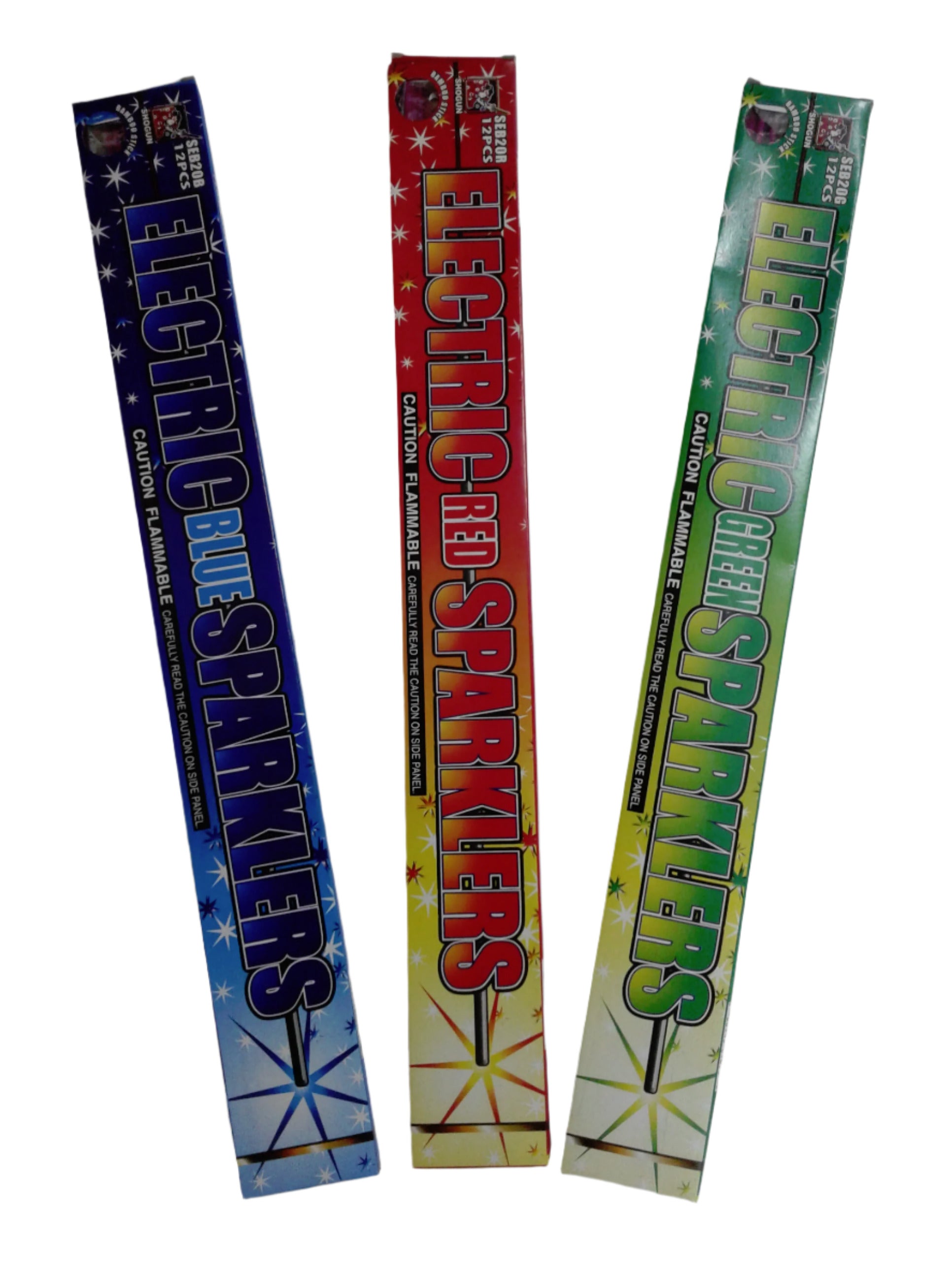 20" long color bamboo sparklers. 12 pcs per box. One color per box. We believe bamboo is a safer alternative to the hot metal wire sparklers.
