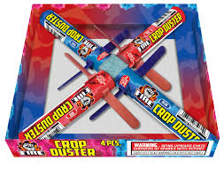 Four pack of helicopters that spin up leaving a smoke trail and pop at the top!