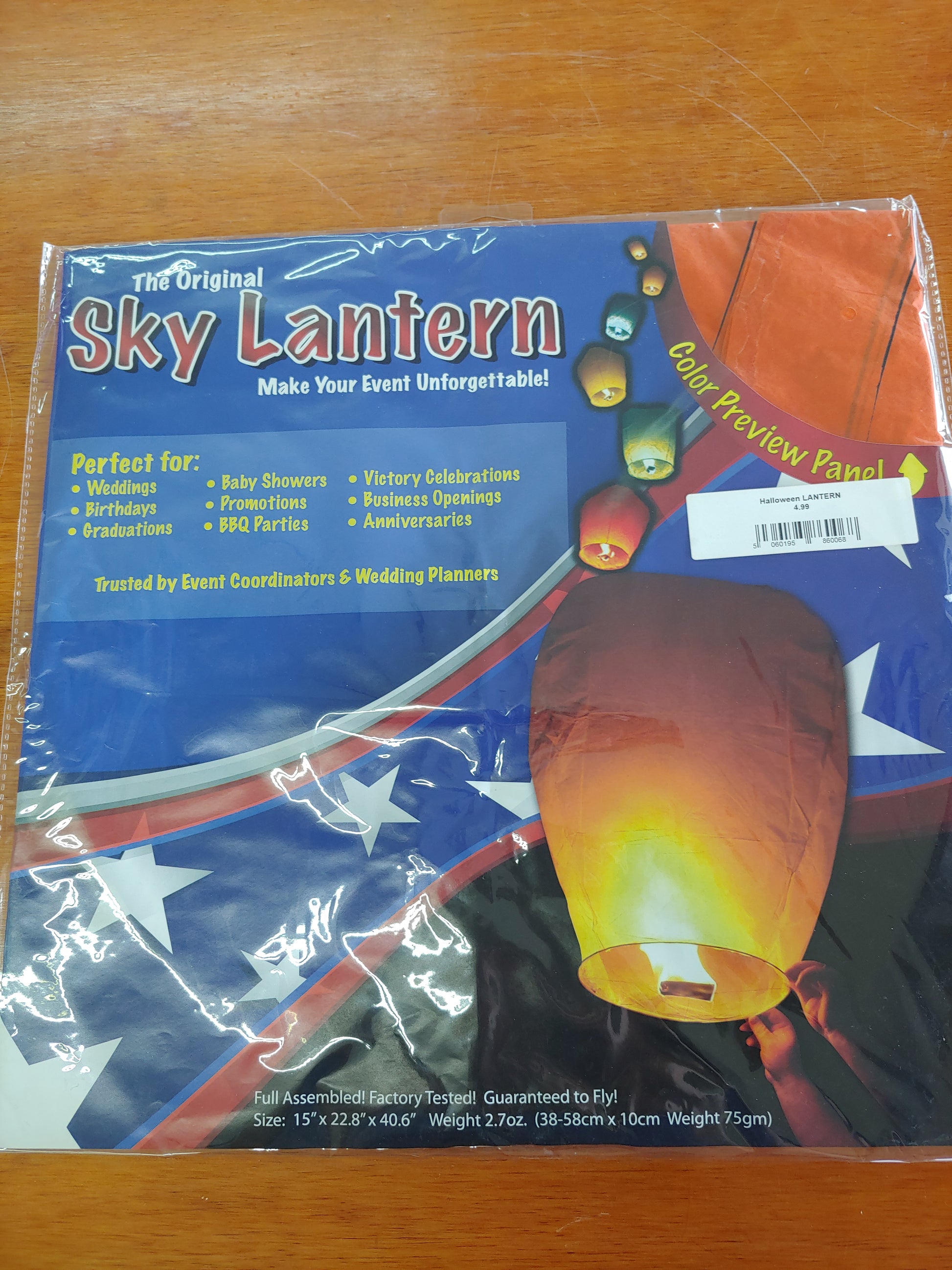 Jack-O-lantern shaped orange chinese paper lantern. Lifts by hot air from integrated flat candle.