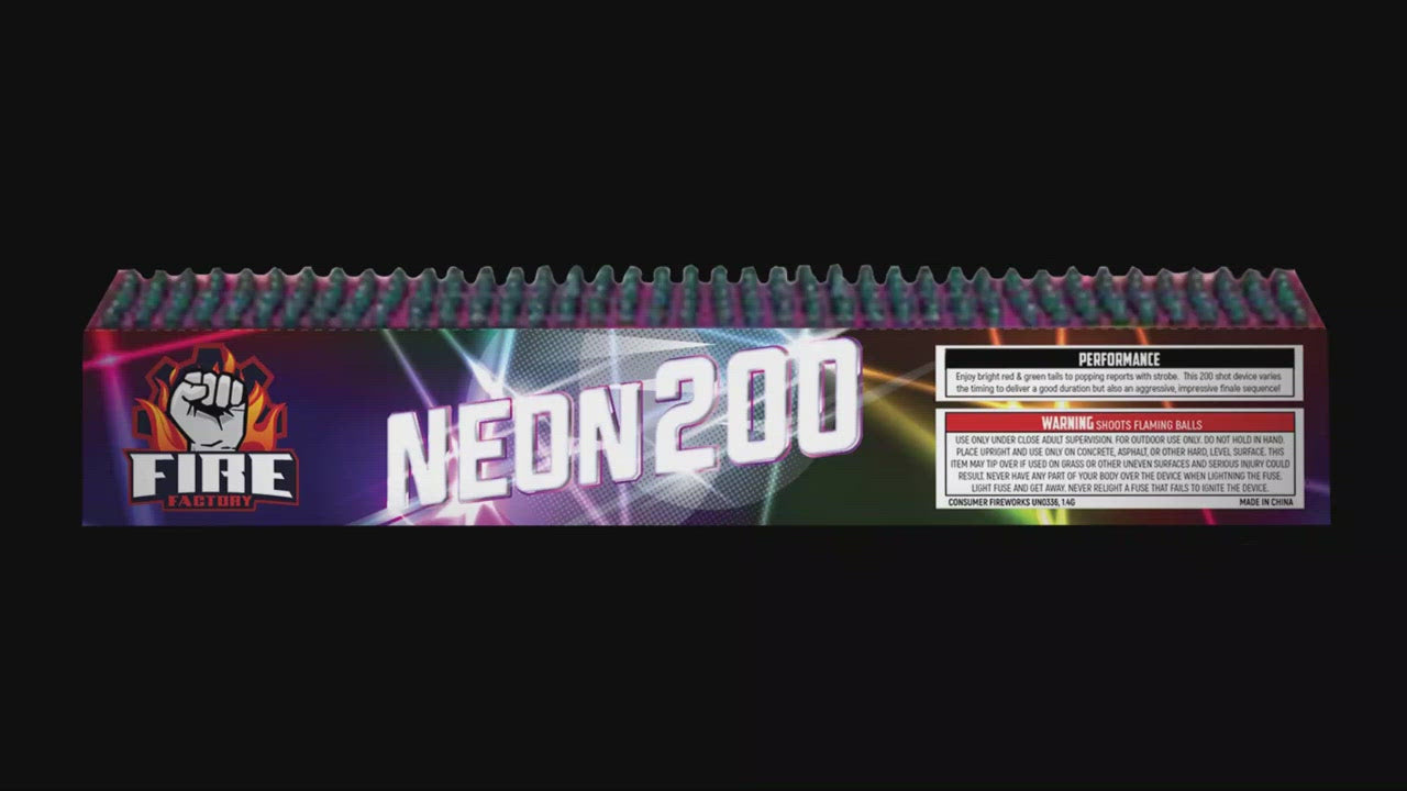 Enjoy bright red & green tails to popping reports with strobe. This 200 shot device varies the timing to deliver a good duration but also an aggressive, impressive finale sequence!