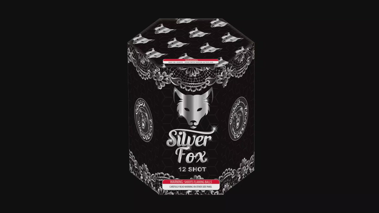 You won’t outfox this silver fox! Alternating shots of multi-color peonies transition into red hot lace and sizzling silver lace for a new and unique performance which you’ll be amazed by. This 12 shot cake finishes up with a triple shot of golden dahlia with sharp crackling to red hot lace.