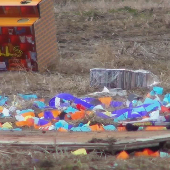 Cardboard race car that moves forwards and then backwards with effects that include: whistling, crackling, and flames.