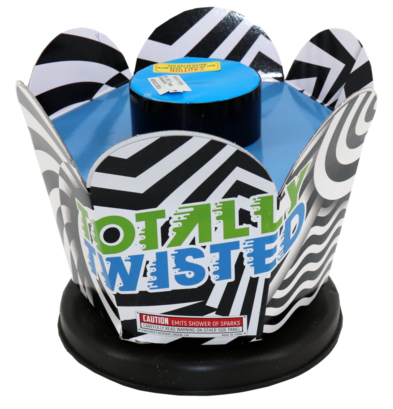 This unique fountain display will go up, down, and side to side to cover the entire viewing area. With a heavy load of powder, it begins with multi-color stars for several seconds before transitioning to liquid fish and sparkling showers. After about 50 seconds of alternating effects, the sides ignite to send this fountain spinning out of control shooting sparks in a large circle. This brilliant display will simply thrill you and you’ll be left in awe after a large crackling and color star finale. It’s a sure bet that the Totally Twisted fountain will stand out among the rest!