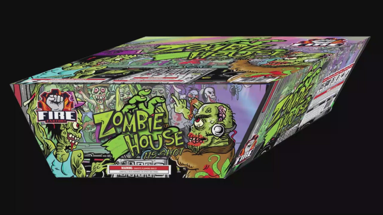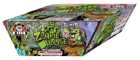 Multicolor 115 shot fan with mines, comets, crackle, strobes, whistles and golden brocade.